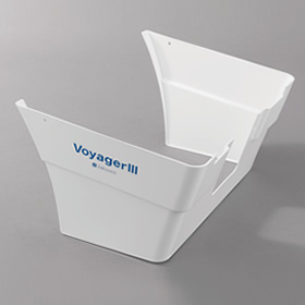 圧空成形とは、真空成形と同時に、圧縮空気(数バール)をかけ、より金型へ密着させて成形する方法で、真空成形よりも精度が高い形状が得られ、射出成形にも劣らないシャープな形状が得られる。